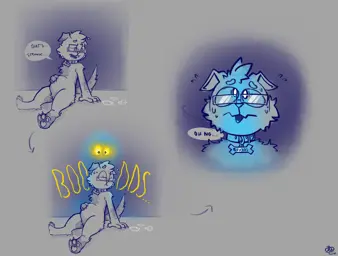 *Click.. click.. click..* "Hmm.." *clack..* "That's.. it'd be easy to tell if they were... uh.." Feline paws fall from the keyboard and onto their owner's lap, as the calico sits back in thought.. He pushes his chair using his feet paws on the desk, but the back of his head meets with a soft and squishy surface..